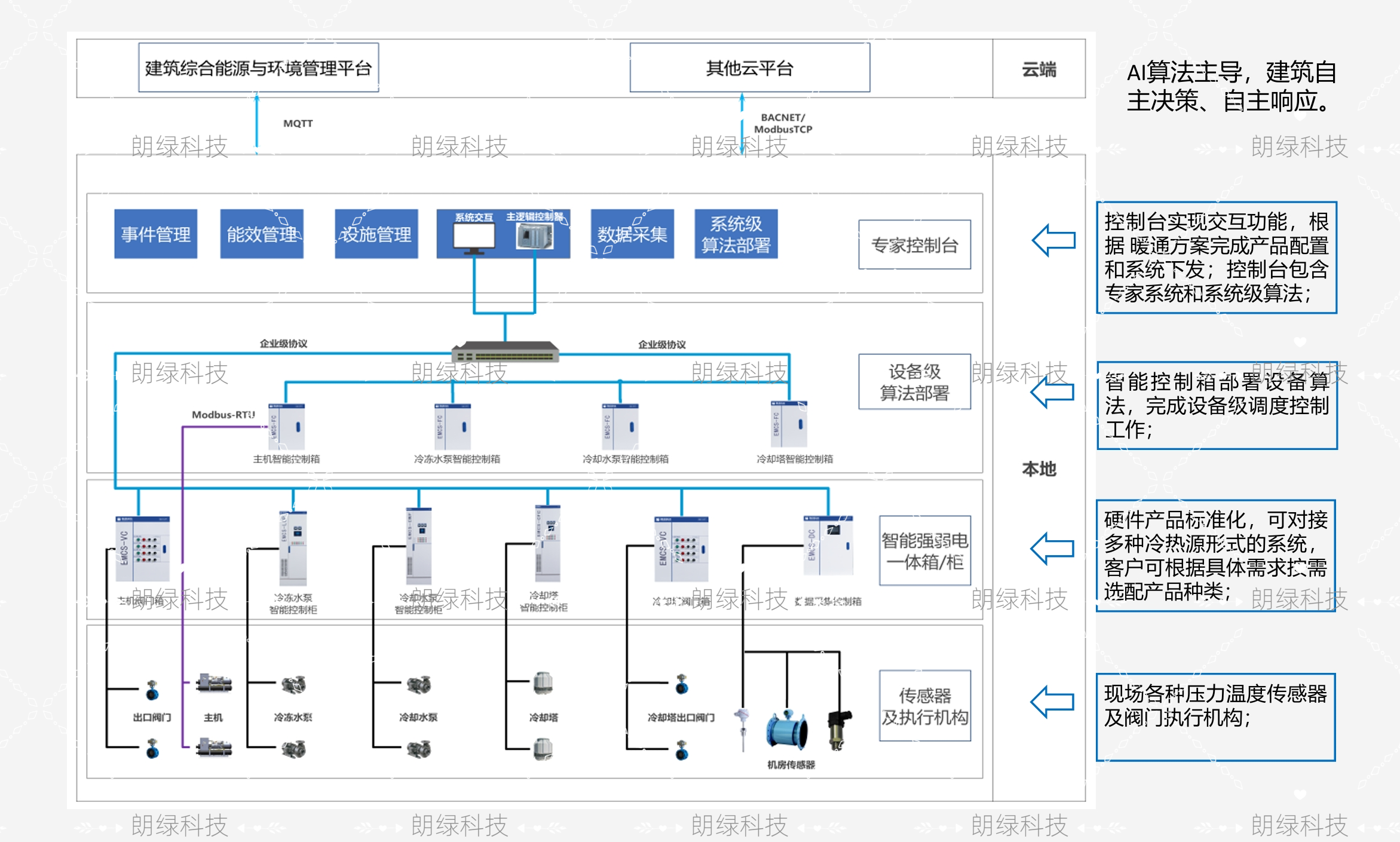 告別傳統事后運維模式,朗綠科技 AI 管理平臺實現“設備-系統-云端”三級聯動。在多個項目中,通過AI算法精準調控地源熱泵、水泵等設備運行邏輯,大大提升空調系統節能率和降低單方能耗,用數據證明“AI 自主決策”的能效革命。