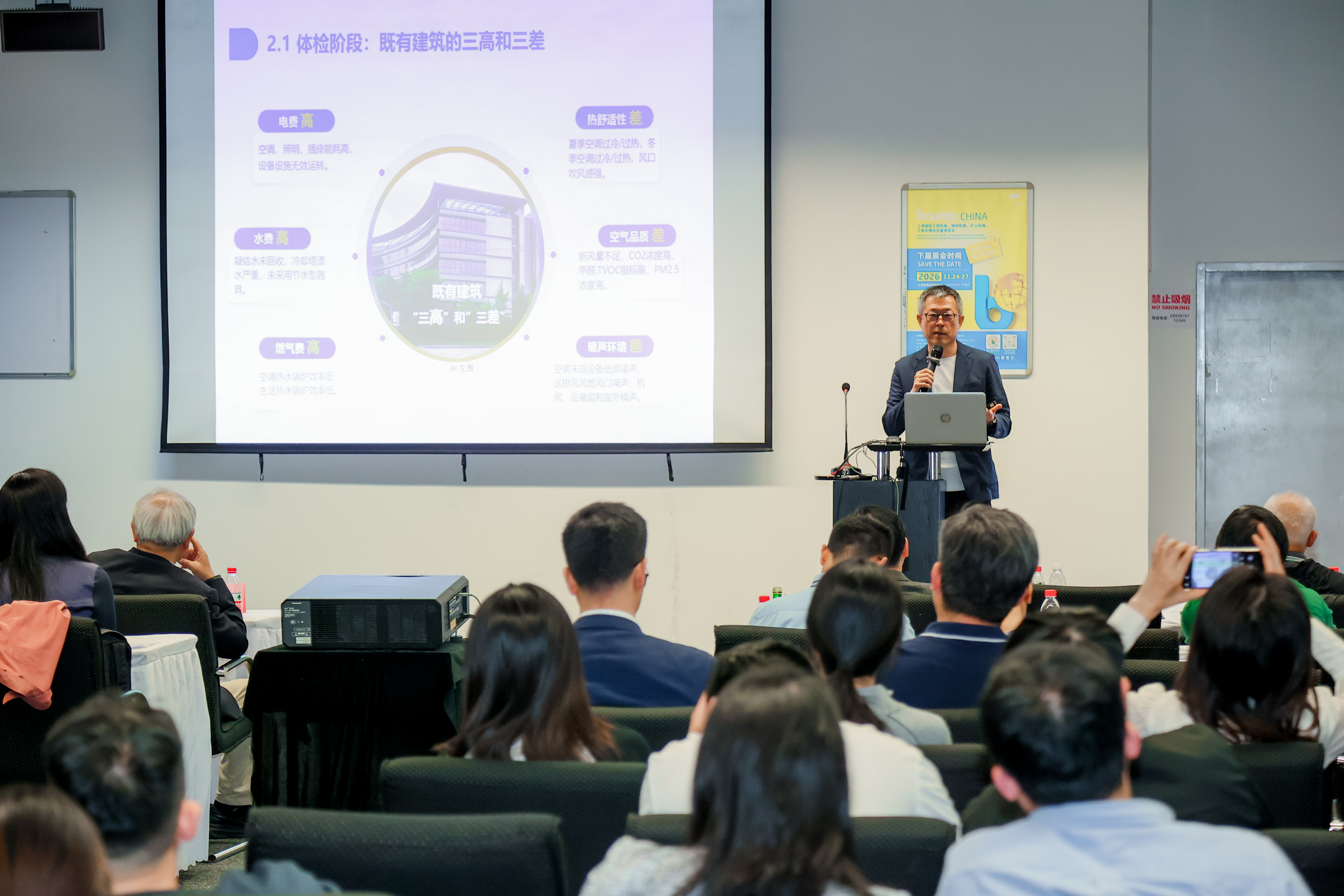 朗綠科技首席技術官、副總裁謝遠建,作為中國建筑節能協會被動式建筑專業委員會榮譽主席,發表題為《AI賦能綠色建筑—解鎖可持續發展新價值》的主旨演講。他結合朗綠科技十余年的實踐探索,深入闡述了AI在推動綠色建筑升級以及重塑既有建筑綠色改造全流程中的應用,引發行業高度關注。