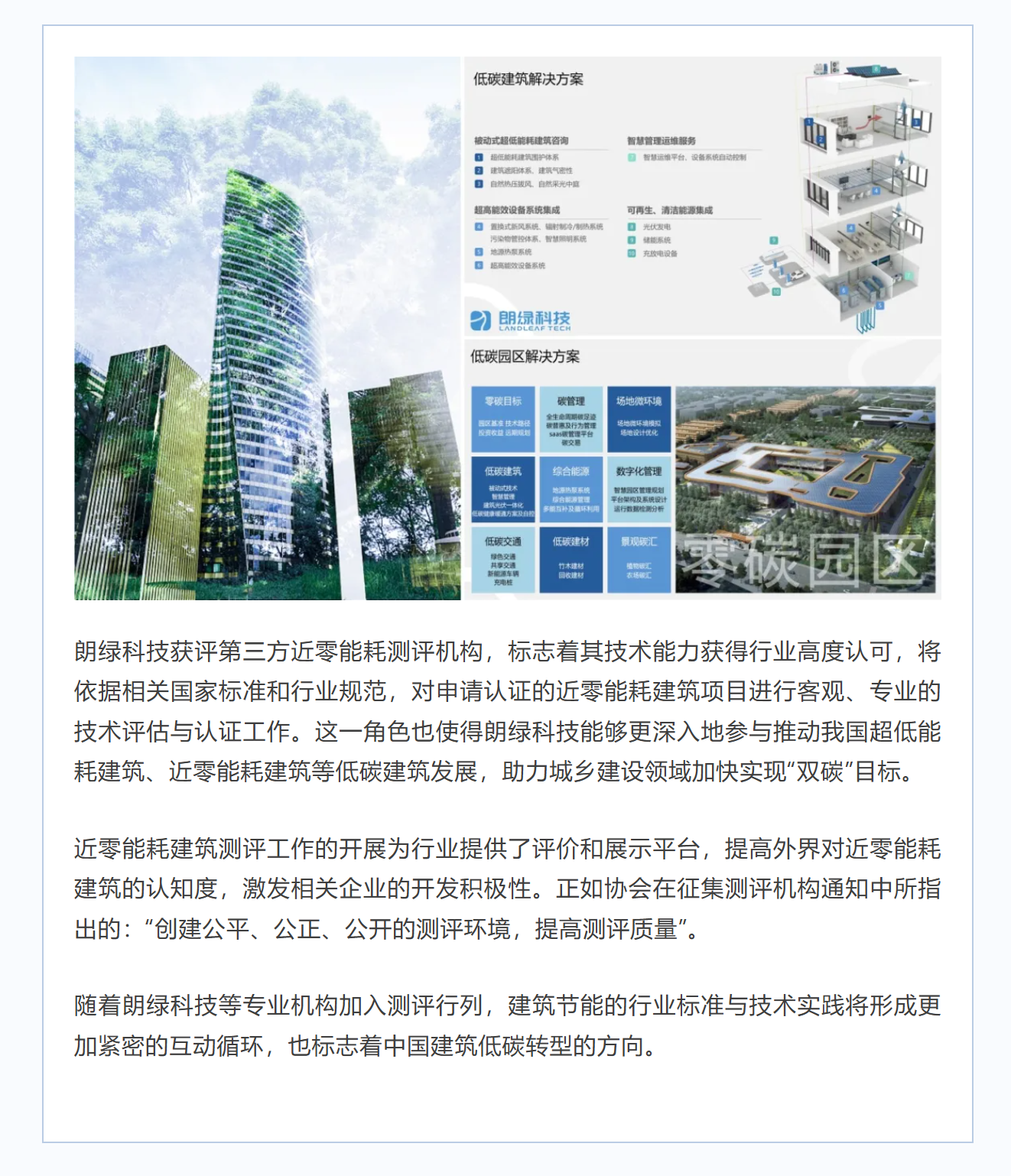 朗綠科技的技術(shù)權(quán)威性不僅體現(xiàn)于測評資質(zhì),更源于其深度參與行業(yè)標(biāo)準(zhǔn)建設(shè)。這些實踐使朗綠科技在評估和實現(xiàn)建筑與園區(qū)節(jié)能目標(biāo)時更具專業(yè)性:既掌握標(biāo)準(zhǔn)制定的理論高度,又具備項目落地的技術(shù)深度。在評估近零能耗項目時,對《近零能耗建筑測評標(biāo)準(zhǔn)》的應(yīng)用更具實操經(jīng)驗。
